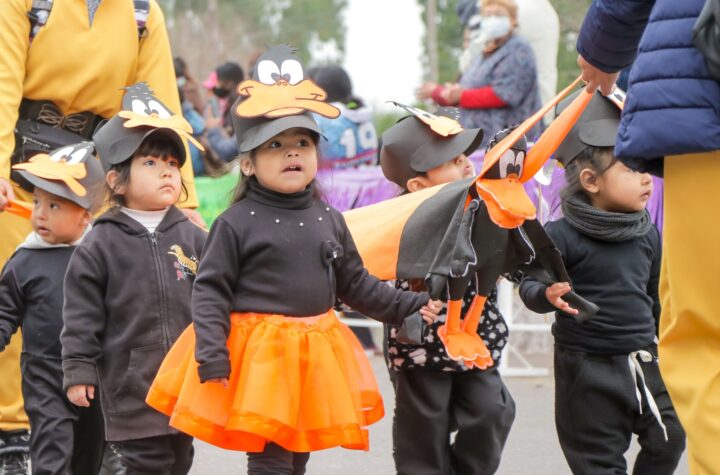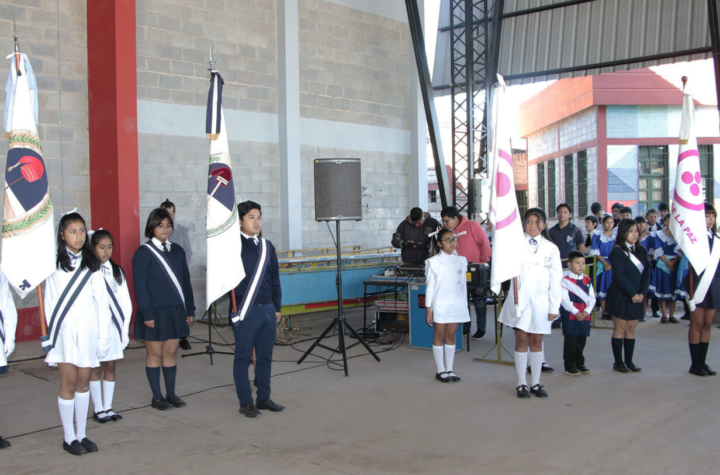 Estudiantes de los séptimos grados de la Escuela Municipal N°1 “Maestra Marina Vilte”, en el transcurso de un acto concretado en...