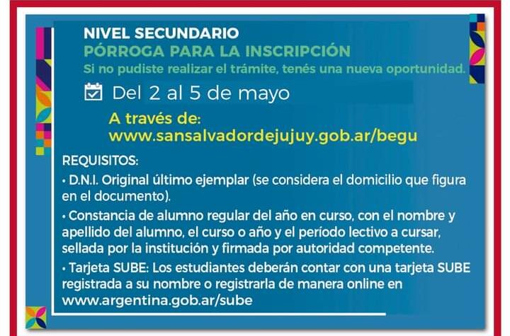 La Municipalidad de San Salvador de Jujuy prorrogó desde el martes 2 de hasta el viernes 5 de mayo la...