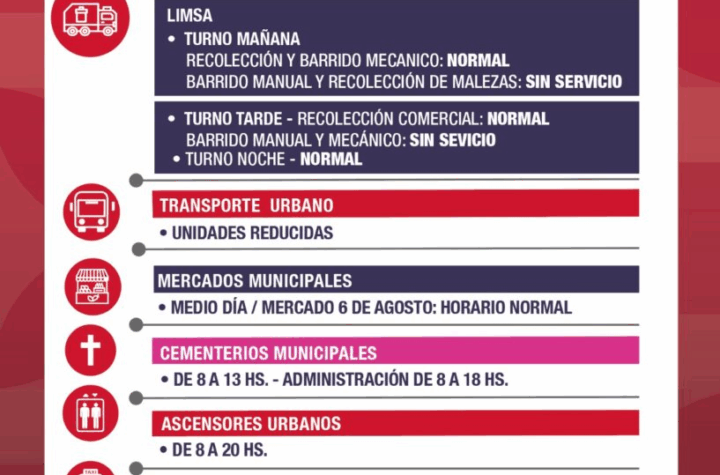 La Municipalidad de San Salvador de Jujuy informó a toda la comunidad como funcionarán los servicios con motivo del feriado...