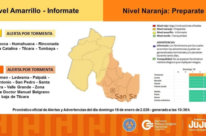 El Servicio Meteorológico Nacional mantiene vigente una alerta amarilla por tormentas par la provincia de Jujuy, al igual que en otras 11...