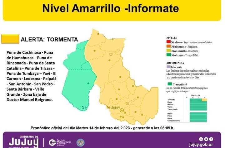 El Servicio Meteorológico Nacional (SMN) emitió alerta amarilla por Tormenta en toda la de la Provincia de Jujuy, en las...
