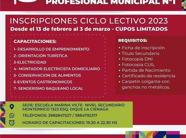 Con una importante oferta de capacitación y oficios que se dictarán en el ciclo lectivo 2023, la Dirección de Educación...