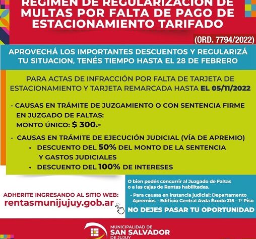 La medida está vigente, previa disposición de Ejecutivo Municipal que prorrogó el Régimen de Regularización de Multas por Faltas de...