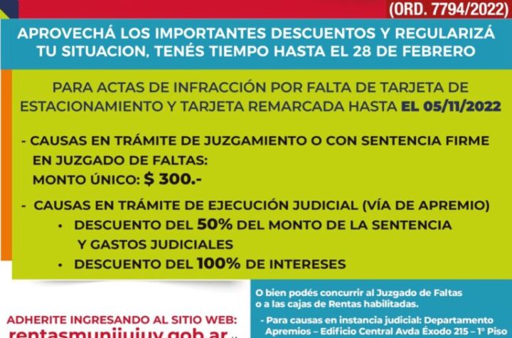 La Municipalidad de San Salvador de Jujuy informó que se prorrogó por el término de un mes, hasta el día...