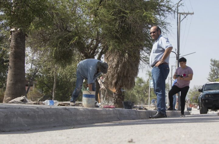 Esos trabajos fueron realizados con fondos municipales y consiste en revestimiento de vereda con señalización podotáctil, iluminación con tecnología led...