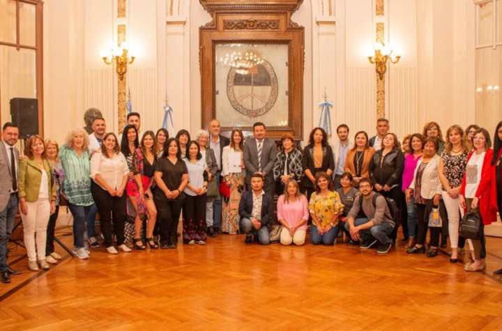 En la sala de reuniones del Concejo Deliberante, el presidente Lisandro Aguiar, junto a los concejales Roberto Brizuela, Patricia Moya,...