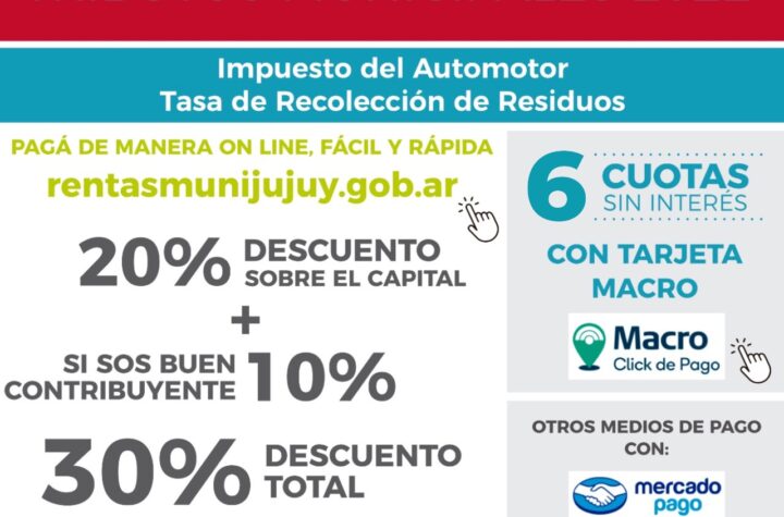 Los contribuyentes pueden abonar el Impuesto Automotor y Tasa de Recolección de Residuos, a través del Pago Anticipado del año...