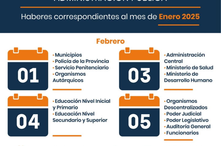Tesorería de la Provincia anunció el cronograma de pagos, correspondiente al mes de enero de 2025. El sábado 1 de...