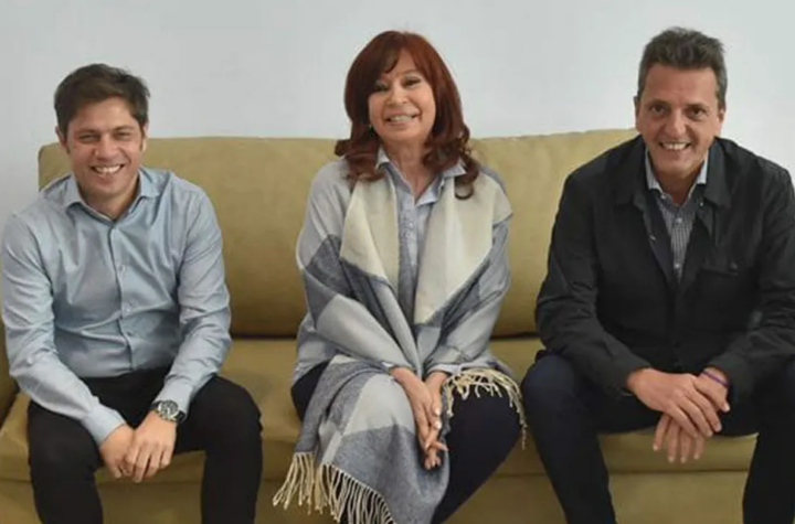 La ex presidenta Cristina Kirchner; el gobernador de Buenos Aires, Axel Kicillof, y el ex ministro de Economía, Sergio Massa,...
