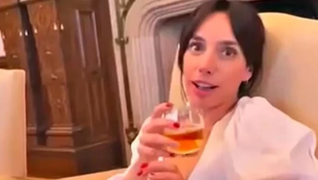 En la secuencia se ve a la periodista con una copa de cerveza mientras el expesidente la graba con su...