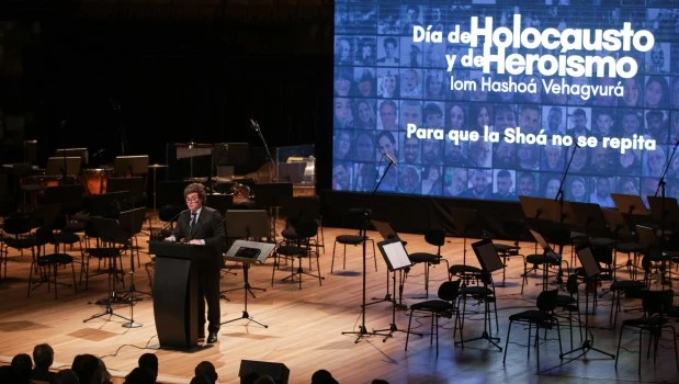 El presidente Javier Milei encabezó hoy el acto por el Día del Holocausto junto a los principales referentes de la...