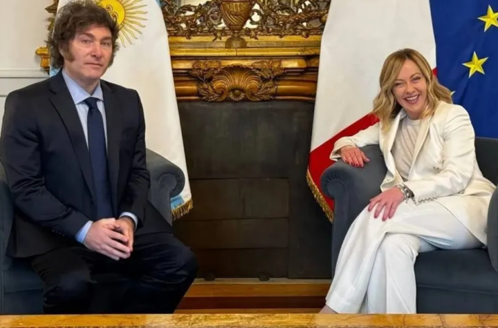El presidente Javier Milei se reunió este lunes en el Palazzo Chigi con la presidente del Consejo de Ministros de...