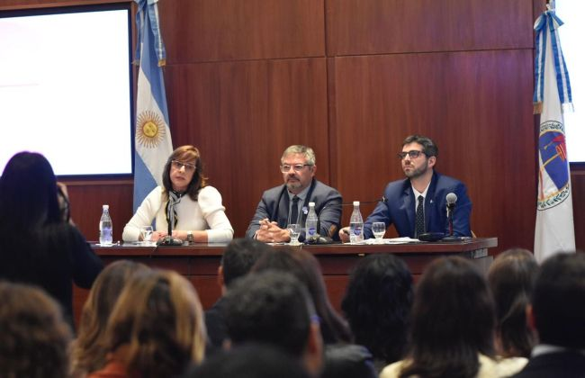 En el Salón Marcos Paz, la titular del Ministerio Público de la Defensa, Gabriela Burgos, y el defensor adjunto, Matías...