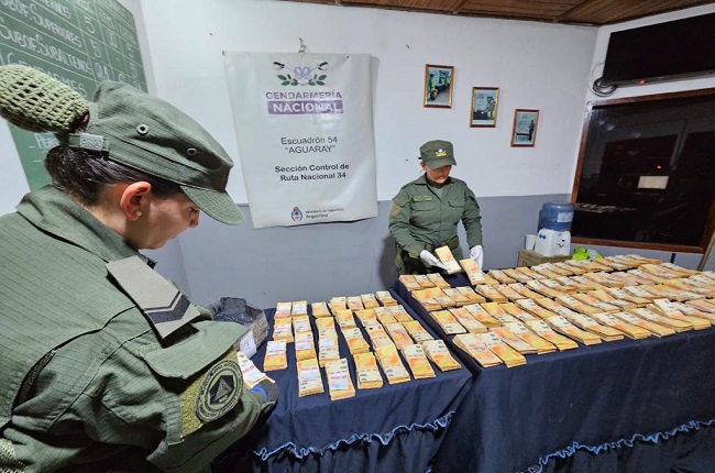 El secuestro se registró en un control llevado adelante por personal del Escuadrón Aguaray, de Gendarmería Nacional. El dinero, en...