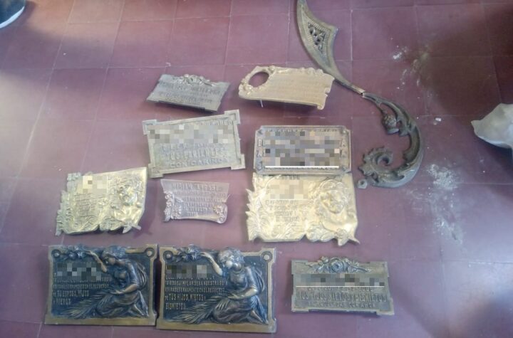 En la mañana del lunes, personal policial de la Brigada de Investigaciones de El Carmen, recuperaron placas de bronce que...