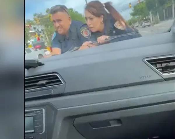 Estaban tomando bebidas alcoholicas en la plaza central y el efectivo quería despejar la zona. Le fracturaron al muñeca izquierda....