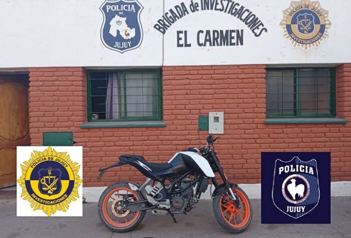 Días atrás, personal policial de la Brigada de Investigaciones de El Carmen, recuperaron una motocicleta de alta gama que había...