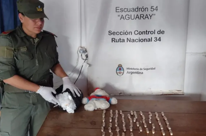 Un total de 55 cápsulas de cocaína fueron halladas ocultas en un juguete de peluche que era trasladado en el...