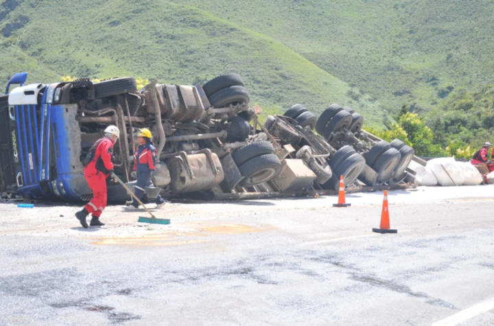 El conductor de un camión que transportaba un cargamento de sal perdió el control, volcó y dos personas tuvieron que...